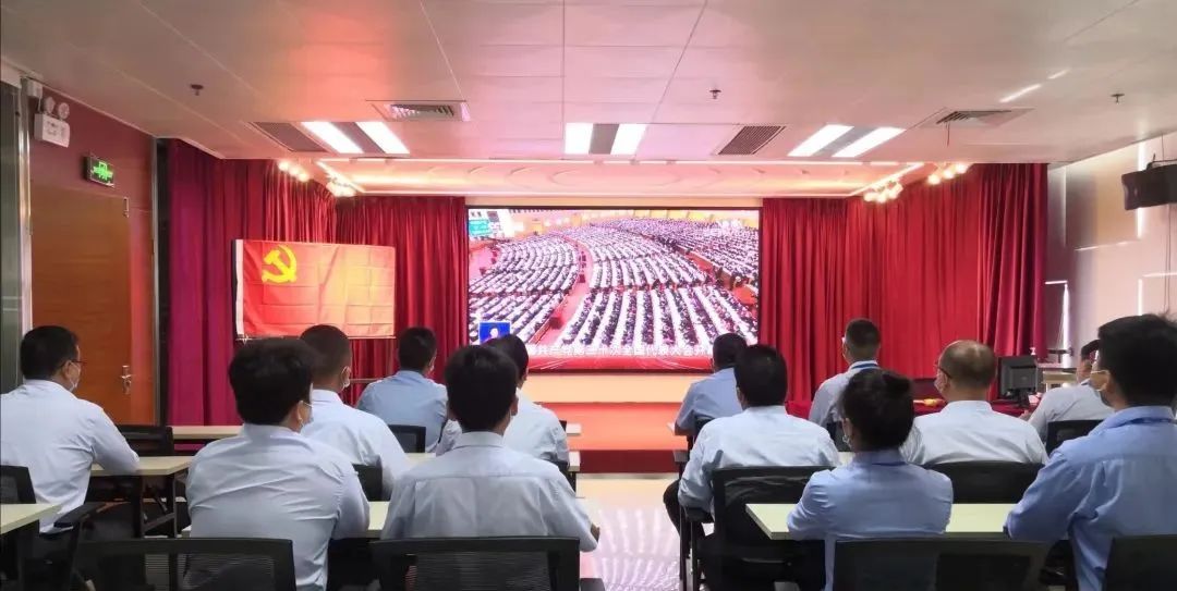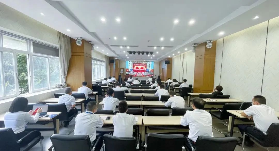 中电科全球领先的电竞赛事平台组织党委委员、经营班子、支部书记、部门负责人在208会议室集中收看党的二十大开幕会直播盛况。