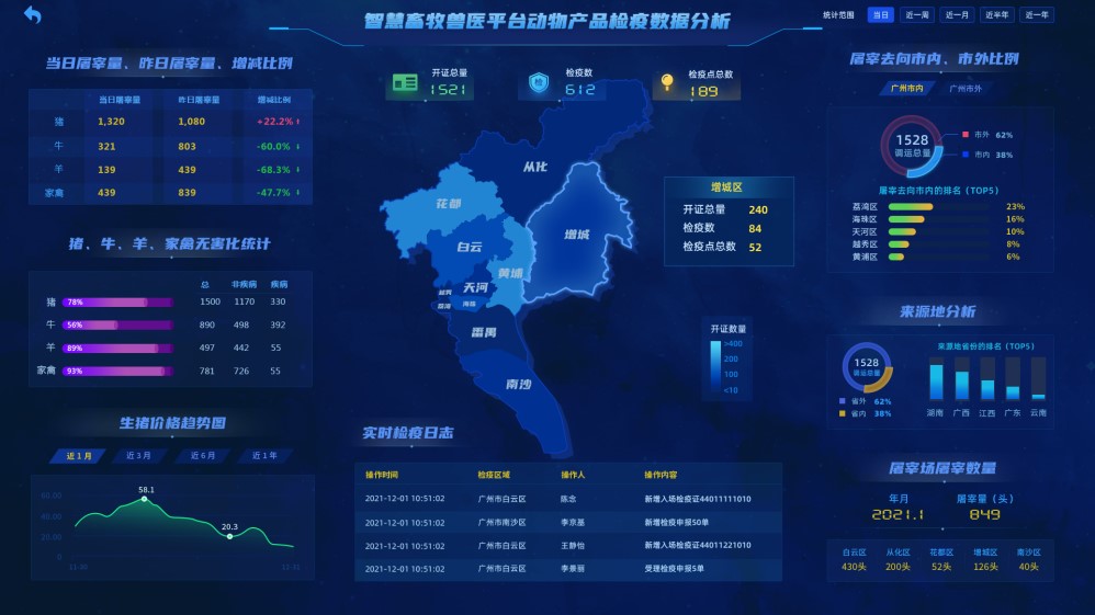 结合“互联网+现代农业”的思路,从畜牧兽医监管工作实际出发,应用自动识别、GIS地图、移动互联网、物联网、区块链等技术,搭建覆盖监督执法系统、动物产地检疫系统、动物产品检疫系统、无疫区检疫监管系统、监管对象管理系统、奶牛两病防疫系统、犬类狂犬病免疫系统、实验室信息系统、防疫物资管理系统等动物卫生监督管理基础业务的应用系统,实现动物及动物制品“从养殖场到餐桌”的全过程溯源,保障“舌尖上的安全”。